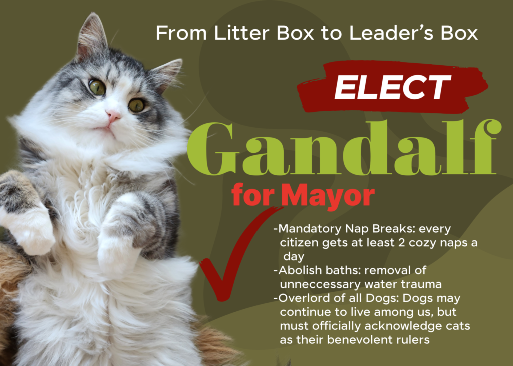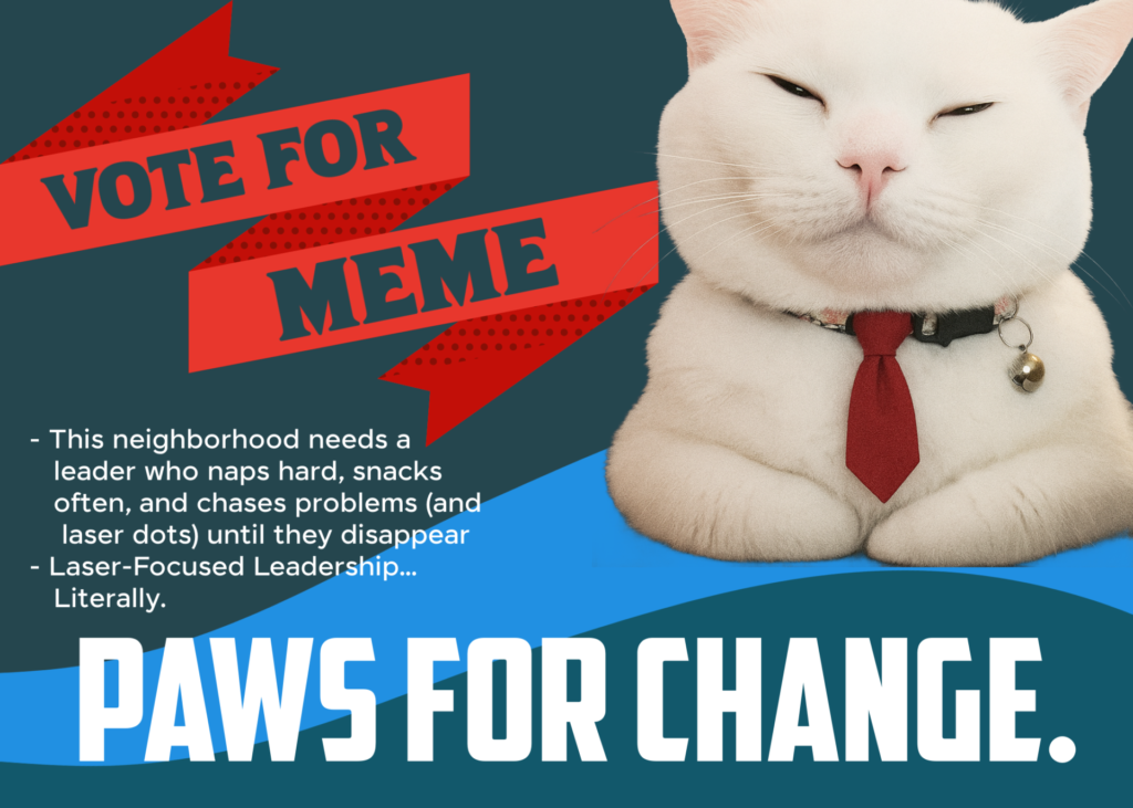We’re inviting our community’s cats, dogs, and critters of all kinds to throw their paws into the race! This lighthearted election is all about celebrating our pets, having fun as a community, and raising awareness about the importance of voting.